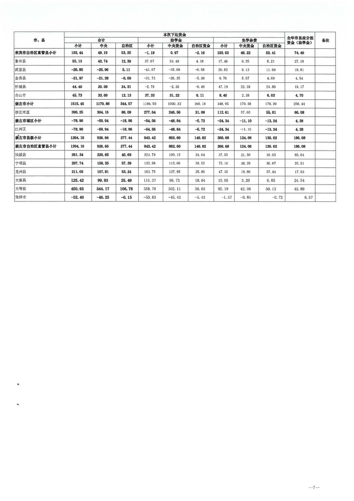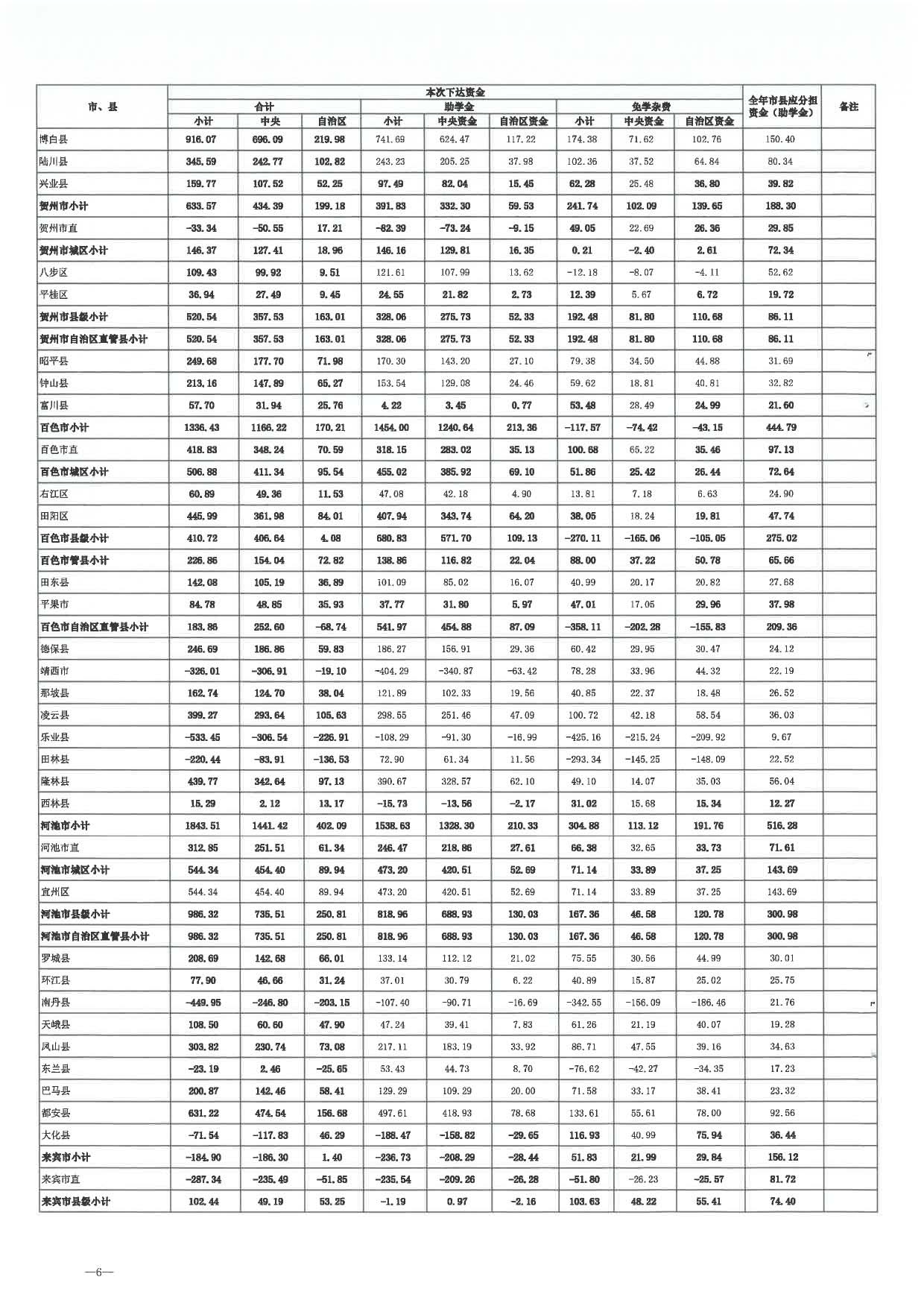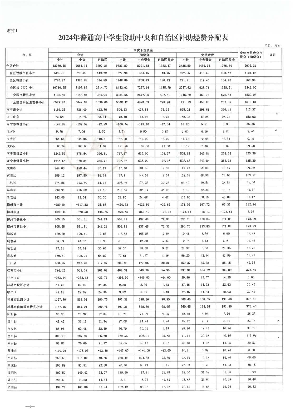2024年普通高中学生资助中央和自治区补助经费分配表