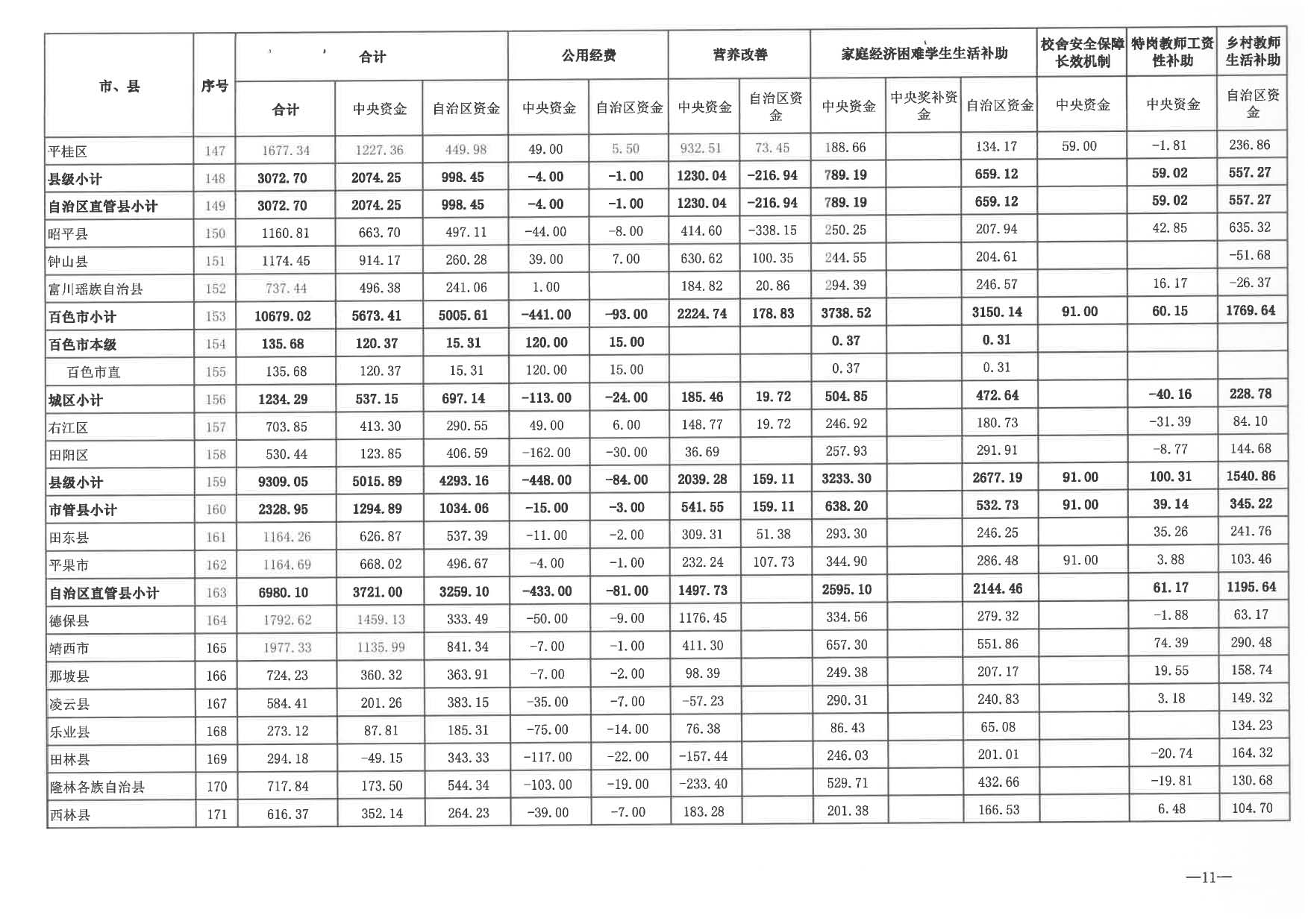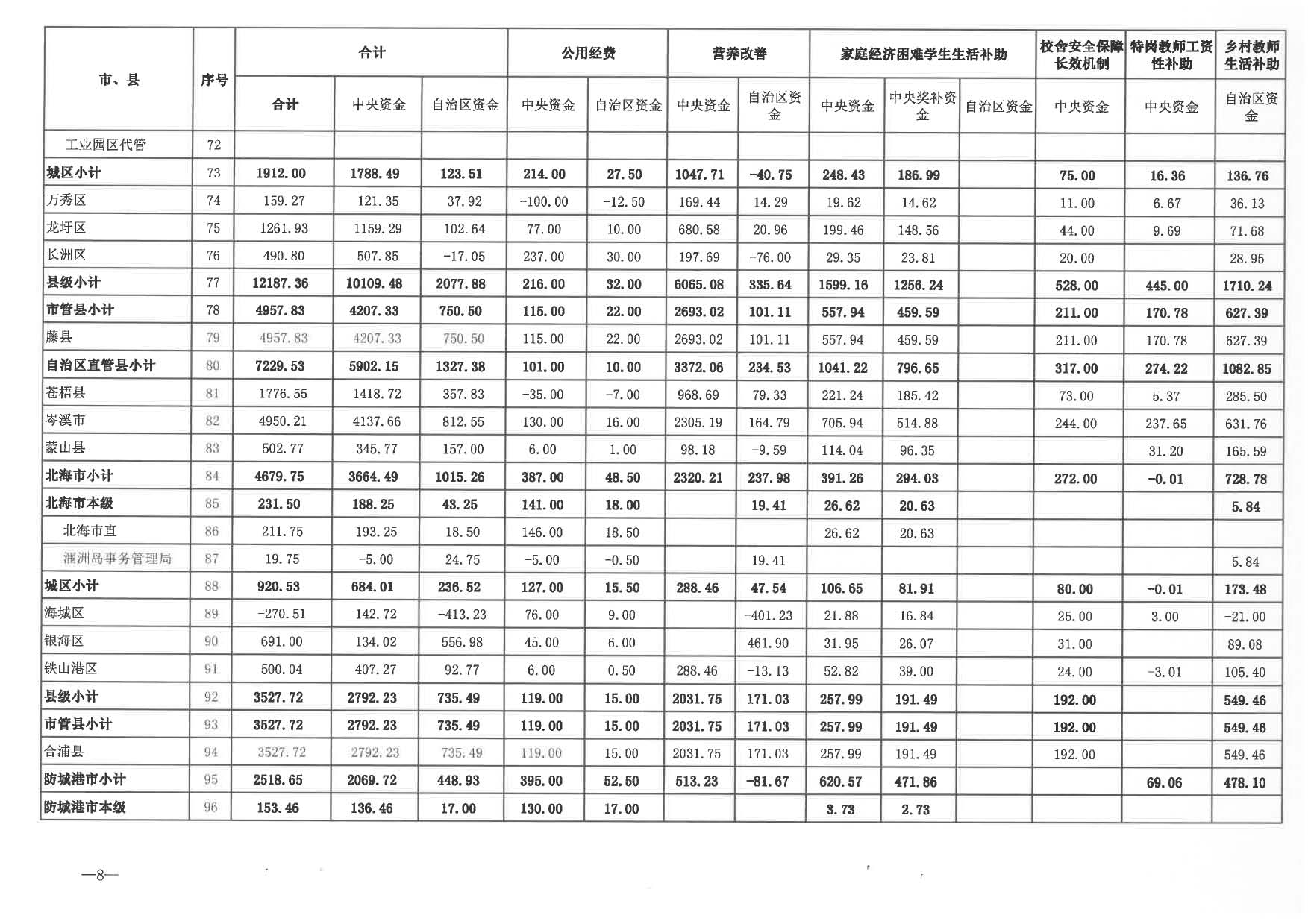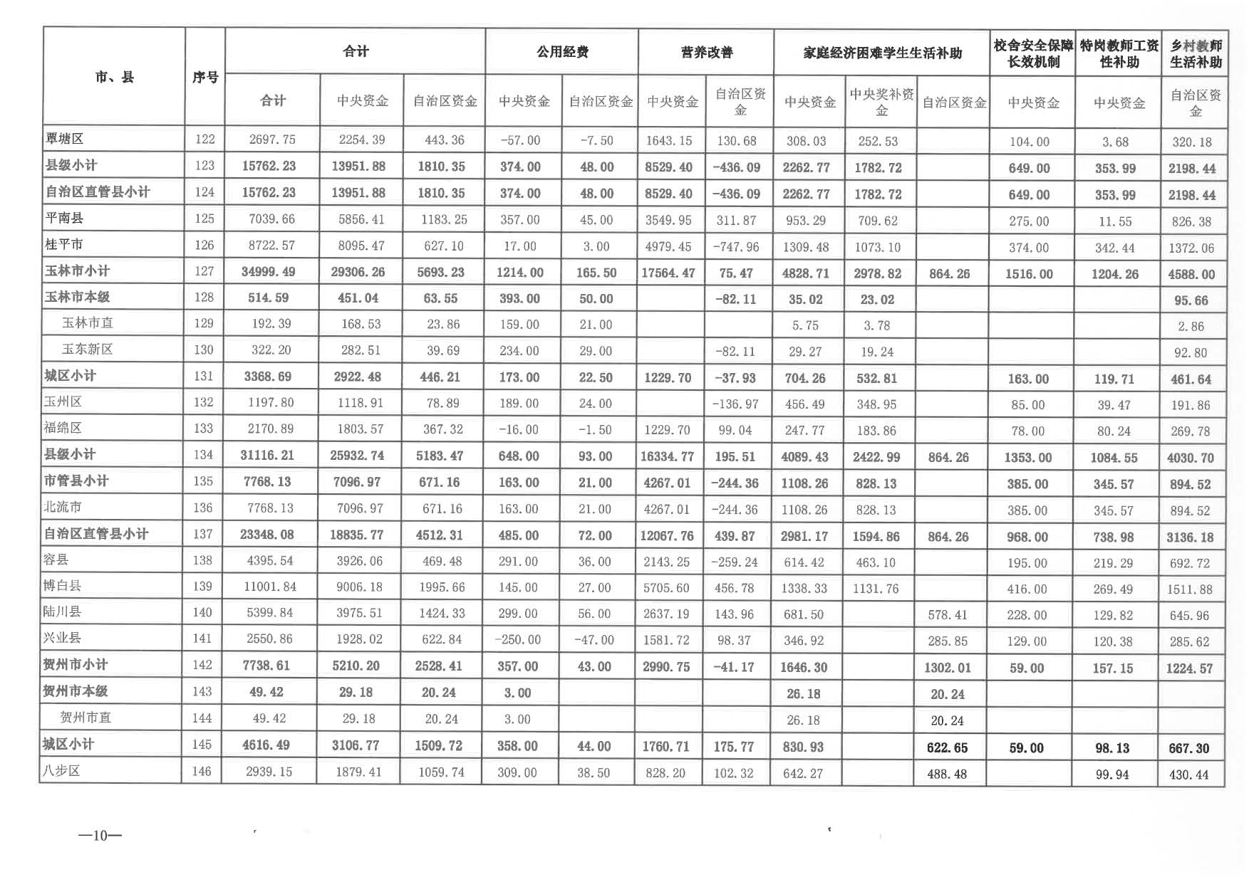 2024年城乡义务教育中央和自治区补助资金分配表