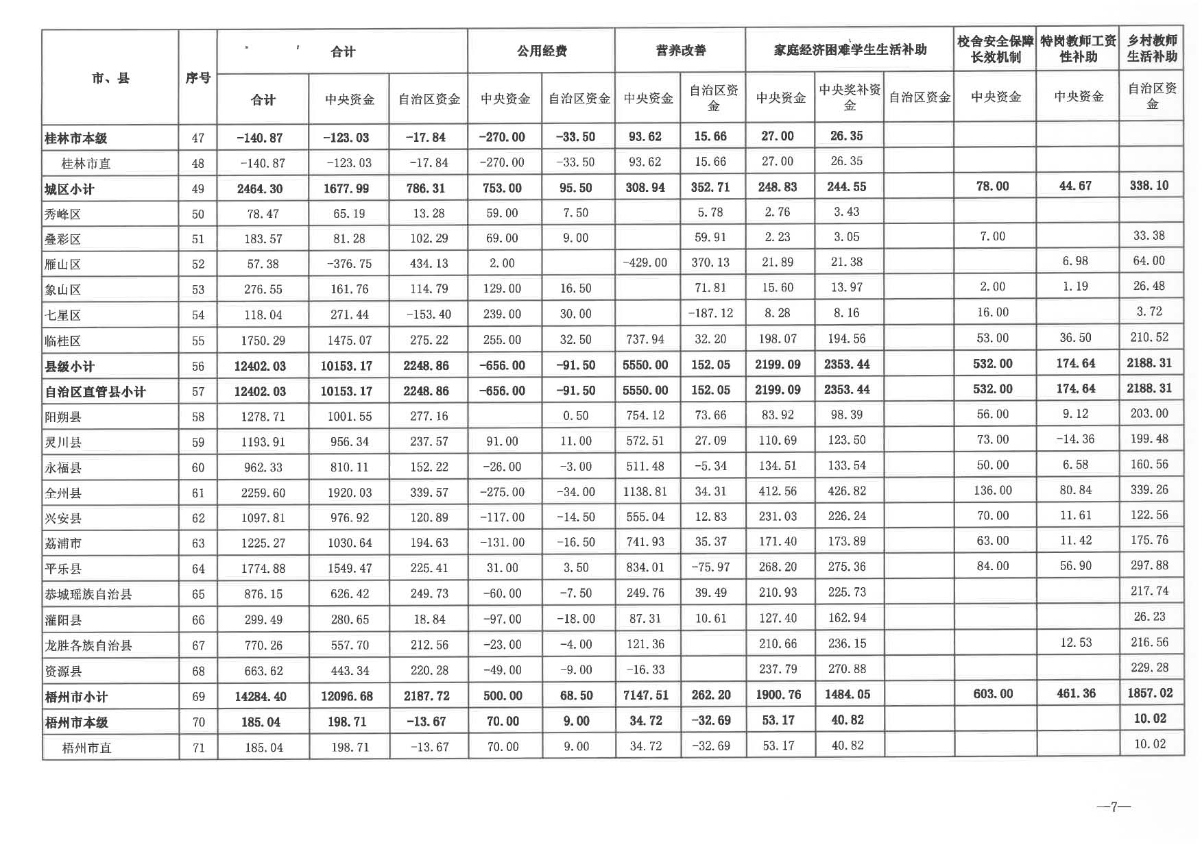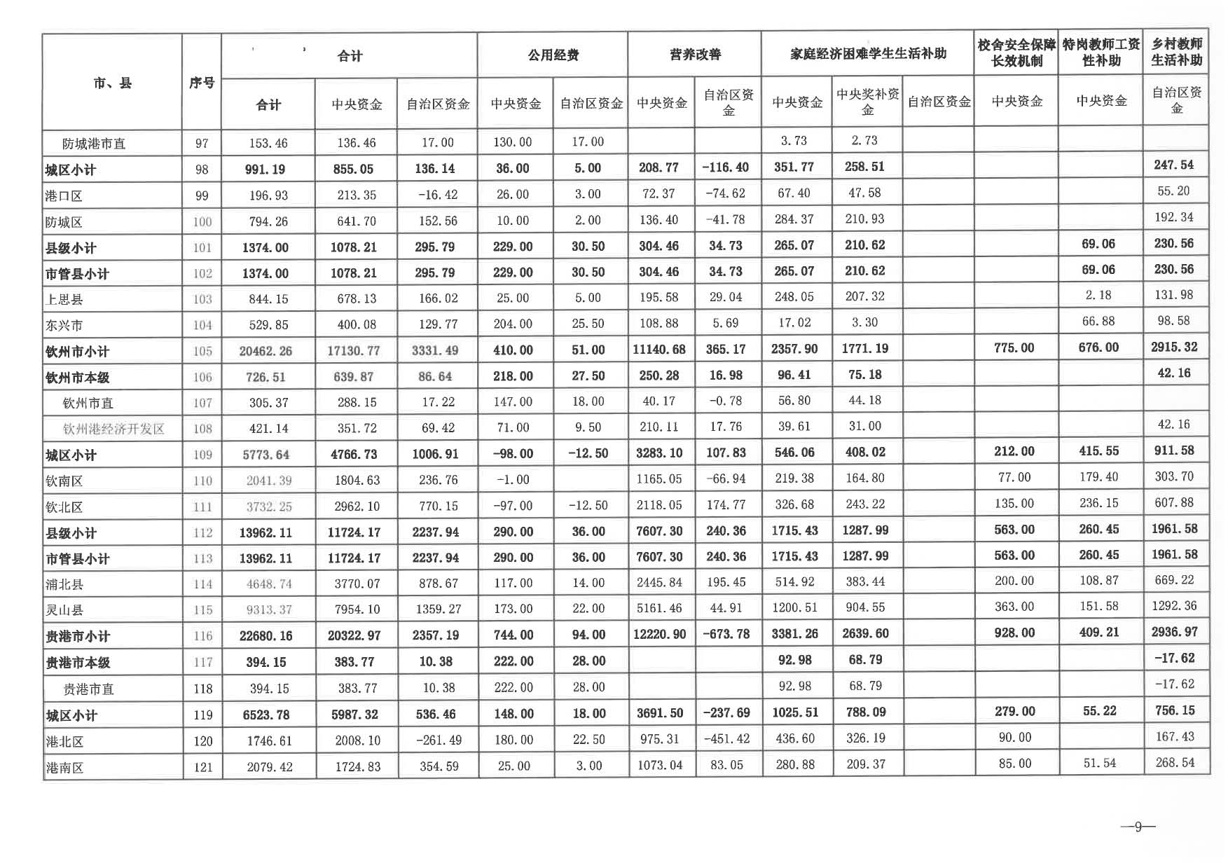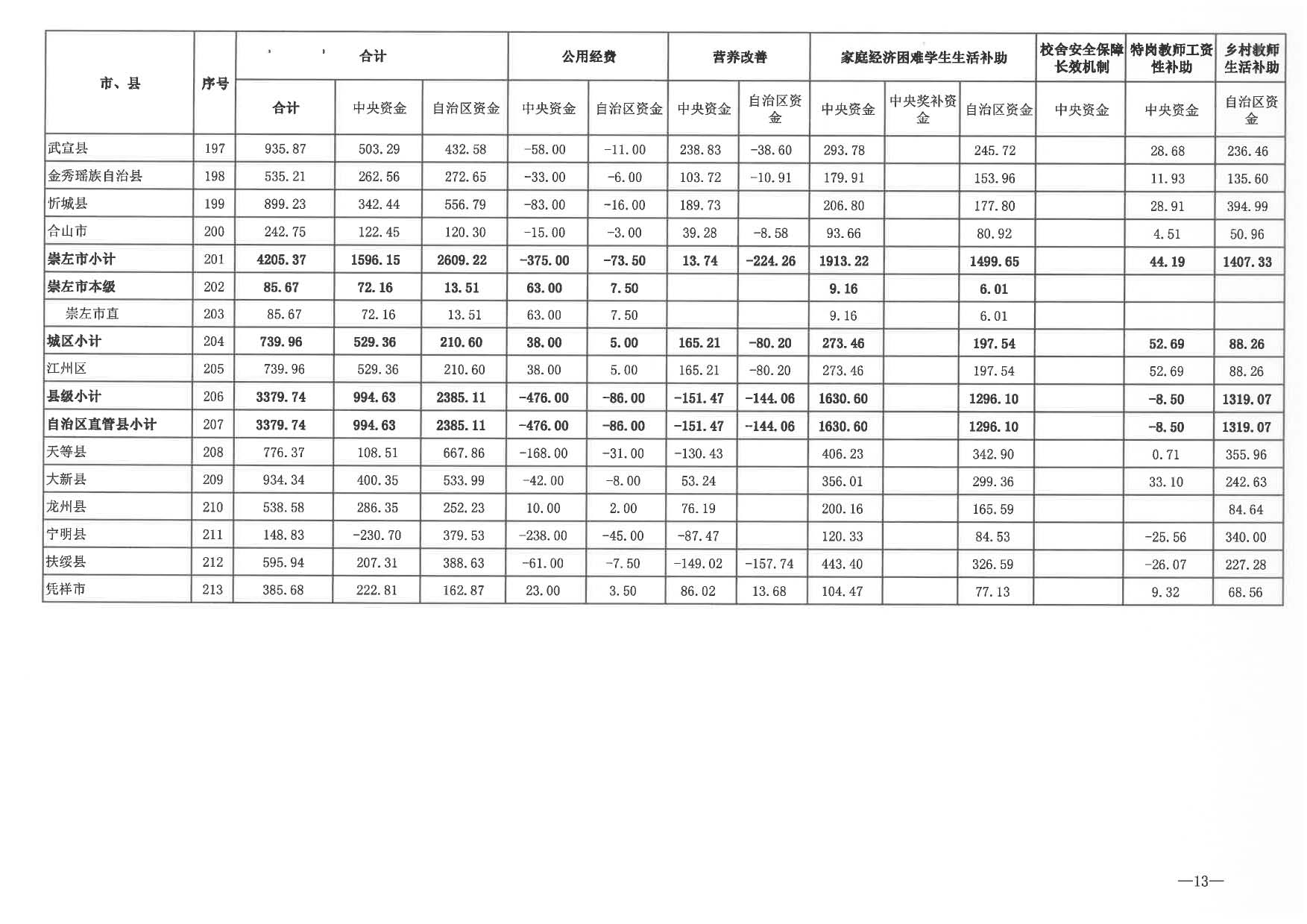 2024年城乡义务教育中央和自治区补助资金分配表