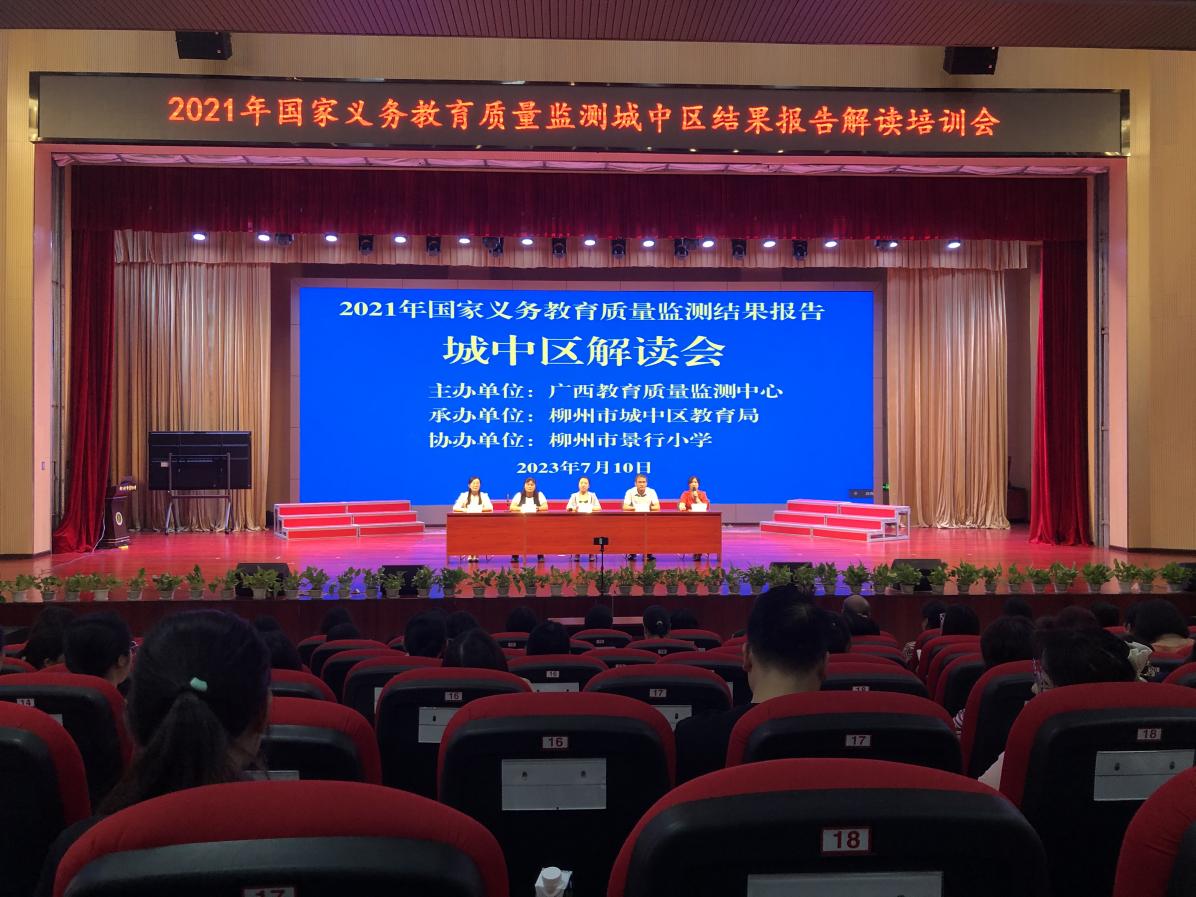 为帮助广西教育质量监测结果运用实验区充分运用监测结果,读懂国家义务教育质量监测结果报告,促进教育教学改进,推进义务教育优质均衡发展,由自治区教育质量监测中心主办,柳州市城中区教育局承办的2021年国家义务教育质量监测城中区结果报告解读培训会,于2023年7月10日在柳州市景行小学举行。