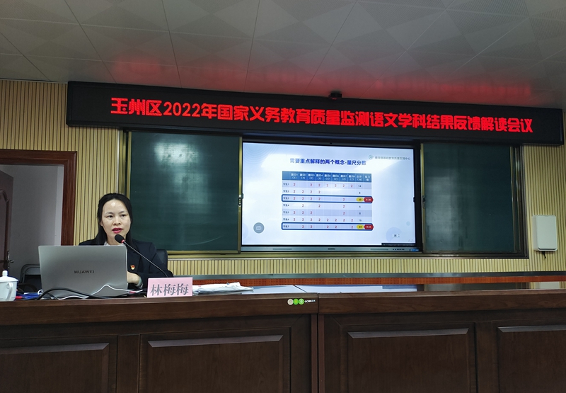 会上,林梅梅解读了玉州区语文学科的监测基本情况,分析了监测数据,同时也客观地指出了玉州区存在的问题和不足,并就学科教学改进、质量提升、义务教育优质均衡发展等提出了具有操作性的整改建议。
