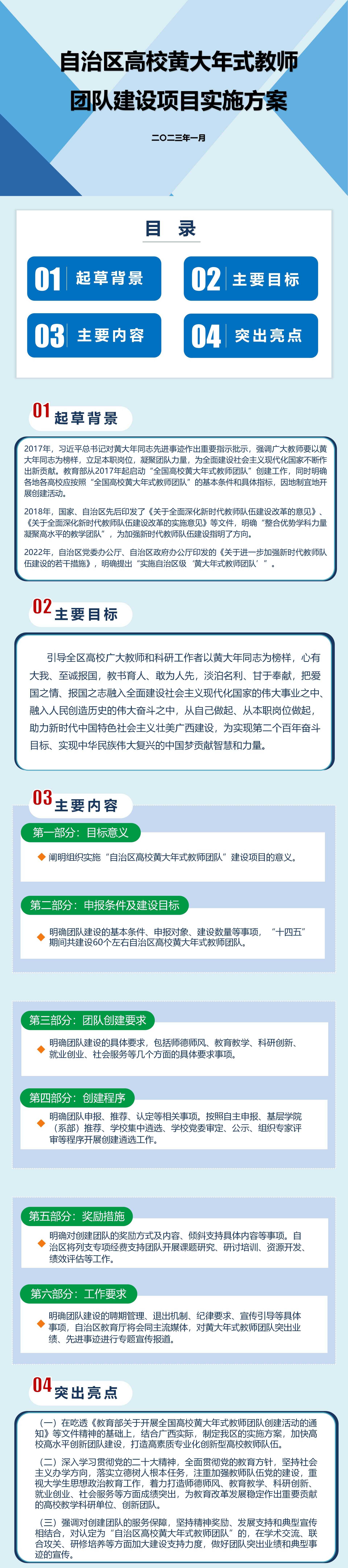 桂教规范〔2023〕1号:欧博官网(中国)门户网站 关于印发《自治区高校黄大年式教师团队建设项目实施方案》的通知