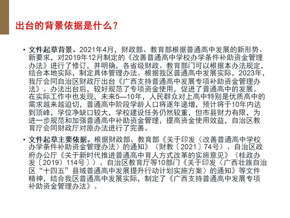 【图解】《广西支持普通高中发展专项补助资金管理办法(2024年修订)》
