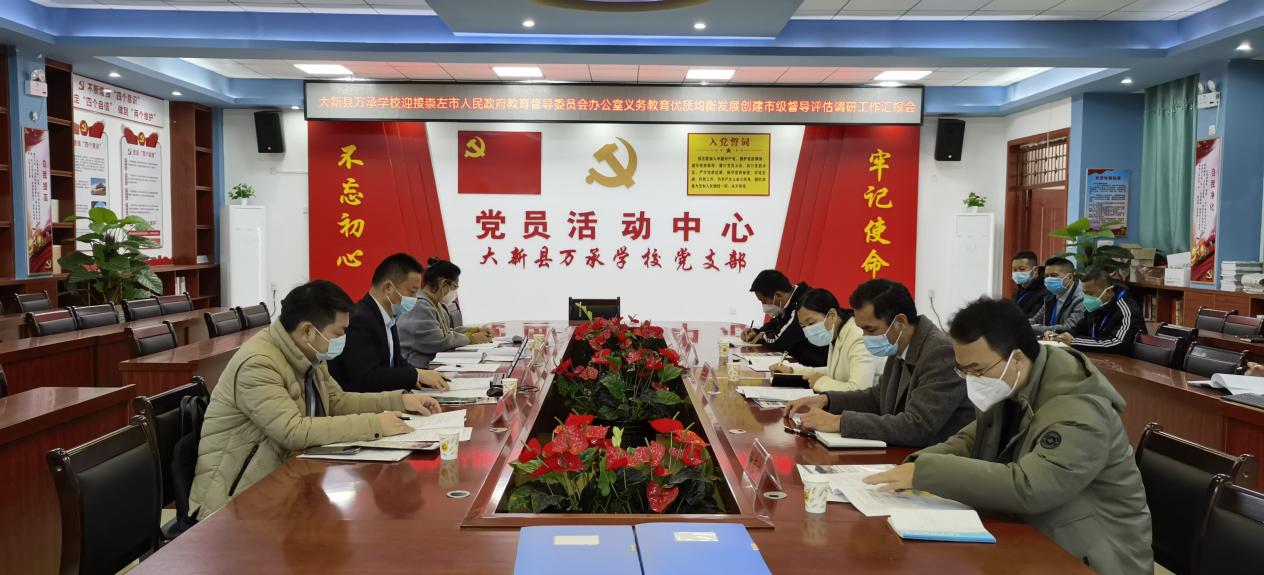 为详细了解崇左市各县(市、区)推进义务教育优质均衡发展工作进度情况,针对性提出对策建议,加快推进该市义务教育优质均衡发展,2022年12月12日至30日,崇左市人民政府教育督导委员会办公室组织市政府督学和专家一行4人,到所辖7个县(市、区)开展县域义务教育优质均衡发展督导评估工作调研。