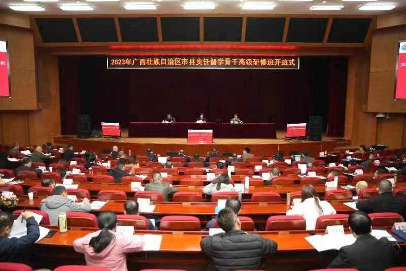 为进一步适应新时代教育督导体制机制改革需要,把握当前我国教育改革发展与教育督导形势,培养和造就一支高素质、专业化的教育督导队伍,2023年4月24日至28日,由广西壮族自治区人民政府教育督导委员会办公室主办、国家教育行政学院承办的“2023年全区市县责任督学骨干高级研修班”在北京举办。国家教育行政学院远程培训部副主任王敬红同志致辞,自治区人民政府教育督导委员会办公室相关工作负责同志作开班讲话。全区各设区市、111个县(市、区)人民政府教育督导机构选派的责任督学骨干代表,自治区教育督导部门相关工作负责同志、自治区教育督导评估专家共127人参加了本次培训。