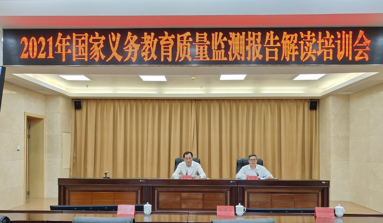 梁桂华主任在培训会上阐述了教育质量监测的重要意义和此次培训的目的。他提出,各地要深入理解国家教育质量监测发展方向,科学而准确地读懂监测结果报告,认真落实2021年国家义务教育质量监测发现问题整改,促进义务教育优质均衡发展。他要求,各设区市、县(市、区)在本次培训会议结束后,要及时组织本级学科解读专家开展本区域2021年国家义务教育质量监测结果报告解读活动;要结合监测结果,自我诊断,精准施策,积极落实结果应用,助力本区域义务教育质量提升。
