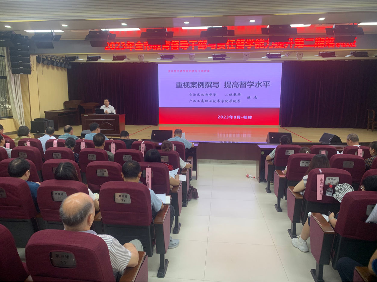 为提高教育督导案例撰写的水平,进一步提升教育督导干部与责任督学的业务素质,近日,桂林市教育督导委员会办公室举办了本年度第二期教育督导干部与责任督学能力提升培训班,特邀第九届自治区人民政府督学、广西工商职业技术学院原院长陈杰教授就督导案例的撰写进行专题辅导。