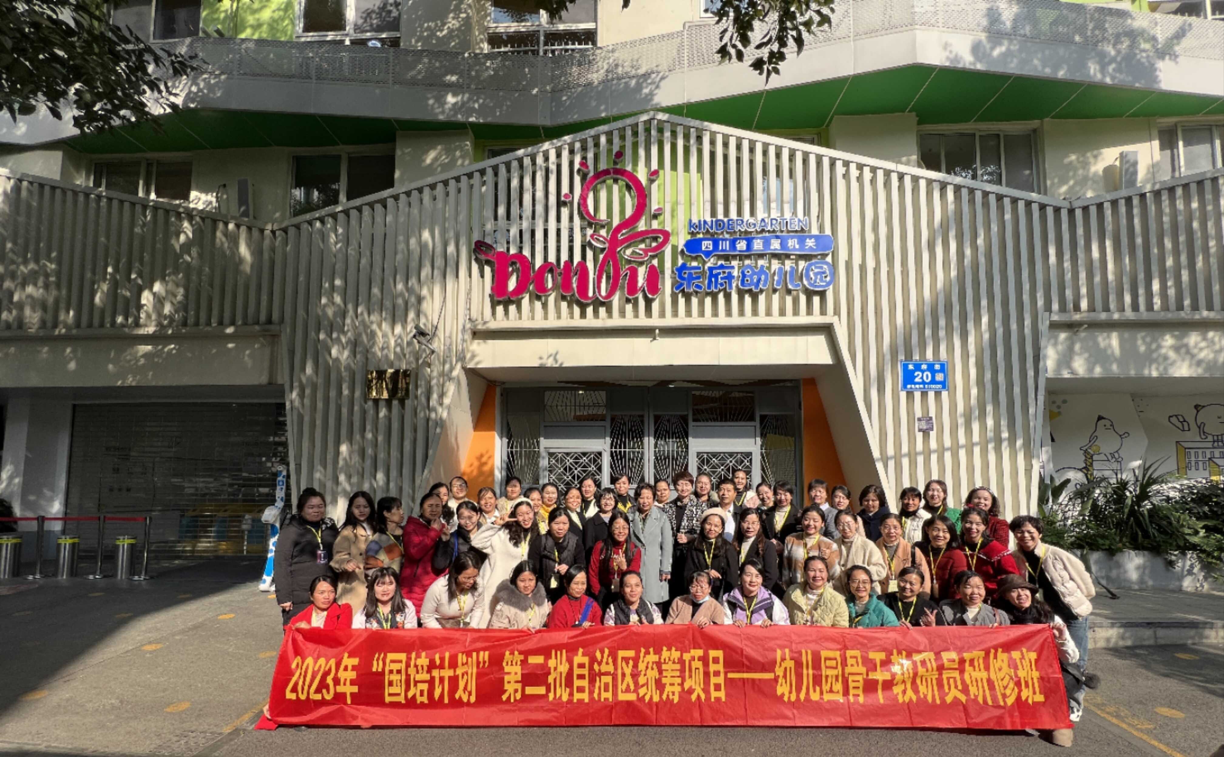 主办、广西幼儿师范高等专科学校承办的广西2023年中小学教师“国培计划”第二批自治区统筹项目“重点领域骨干教师培训”——幼儿园骨干教研员研修班在成都市举办。100名幼儿园骨干教研员参加了研修活动。