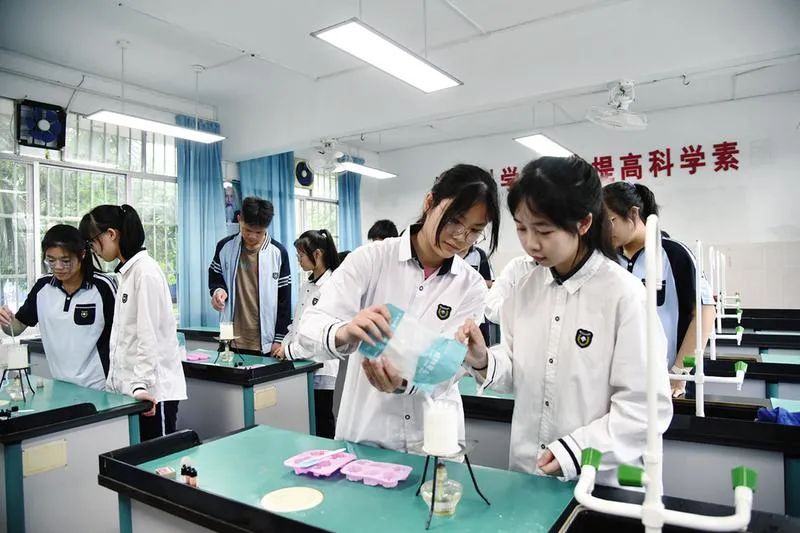 南宁市第四十二中学打造特色校本课程。图为学生在实验室制作肥皂