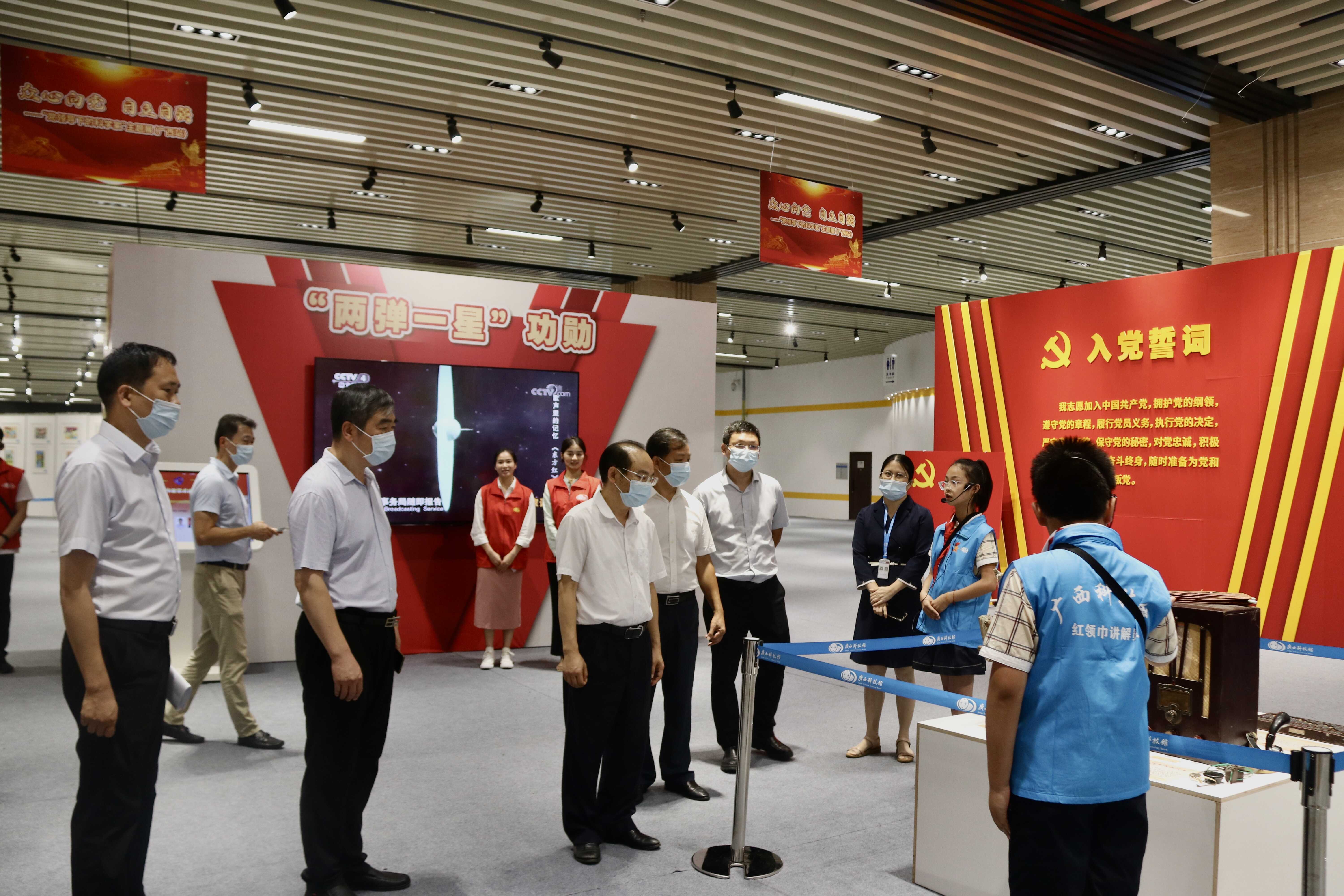 调研组一行在广西科技馆聆听科学列车红领巾讲解员讲解