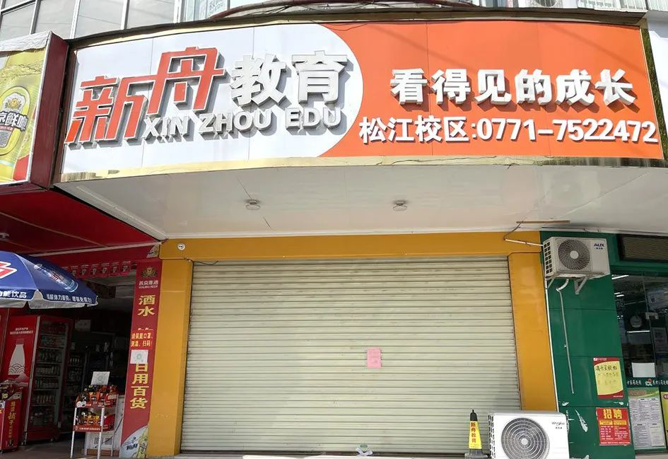 扶绥县新舟云学堂教育培训学校门口已张贴封条及告知书